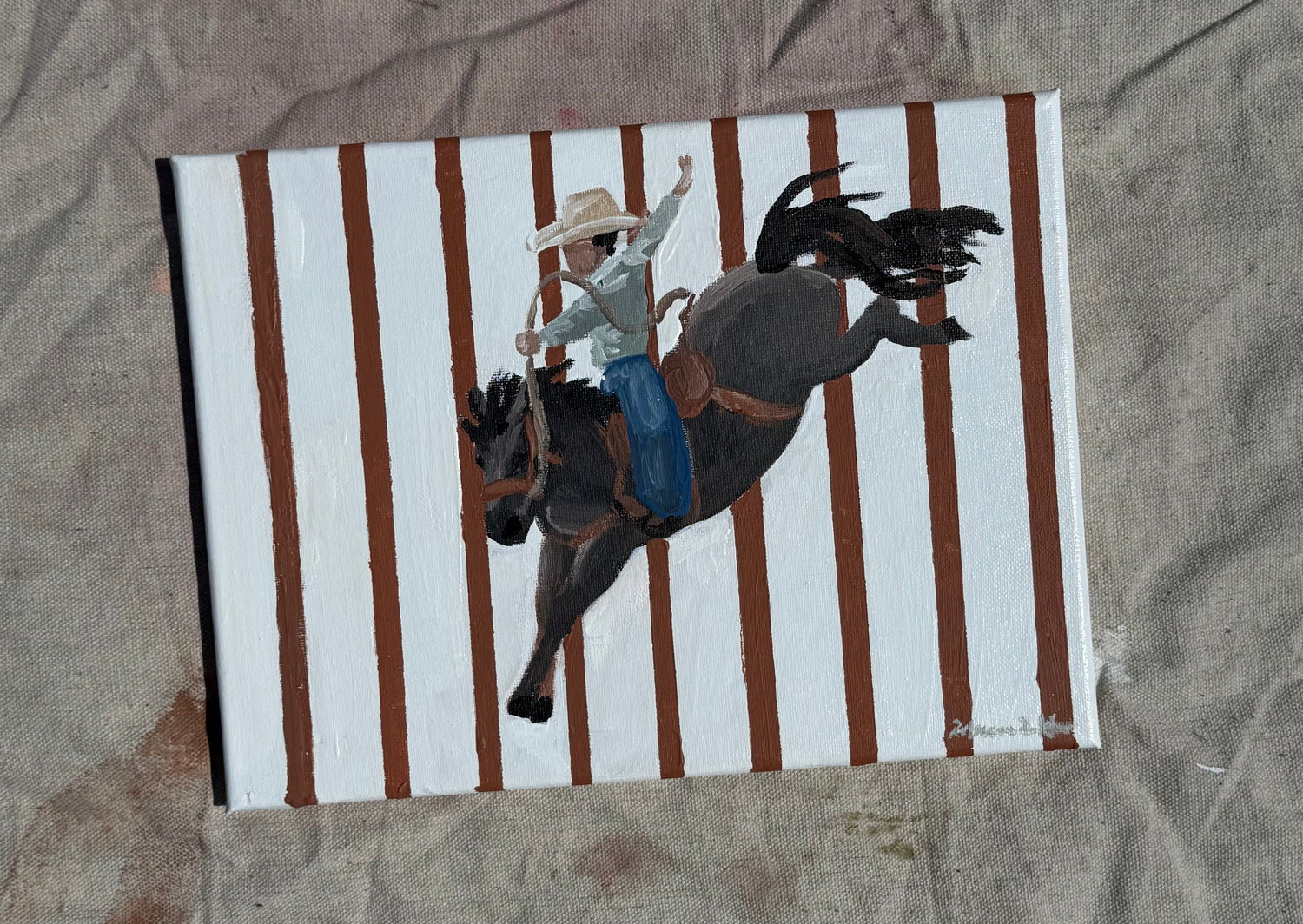 Inspired by the energy of the rodeo, this piece captures the thrill of the ride
