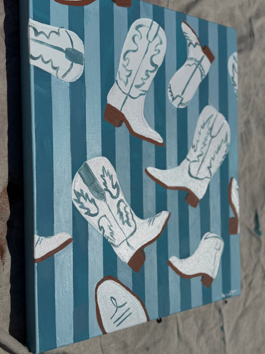 A celebration of well-worn boots and the stories they carry, this piece is inspired by the rhythm of Western life—every step taken, every dance twirled, every adventure chased