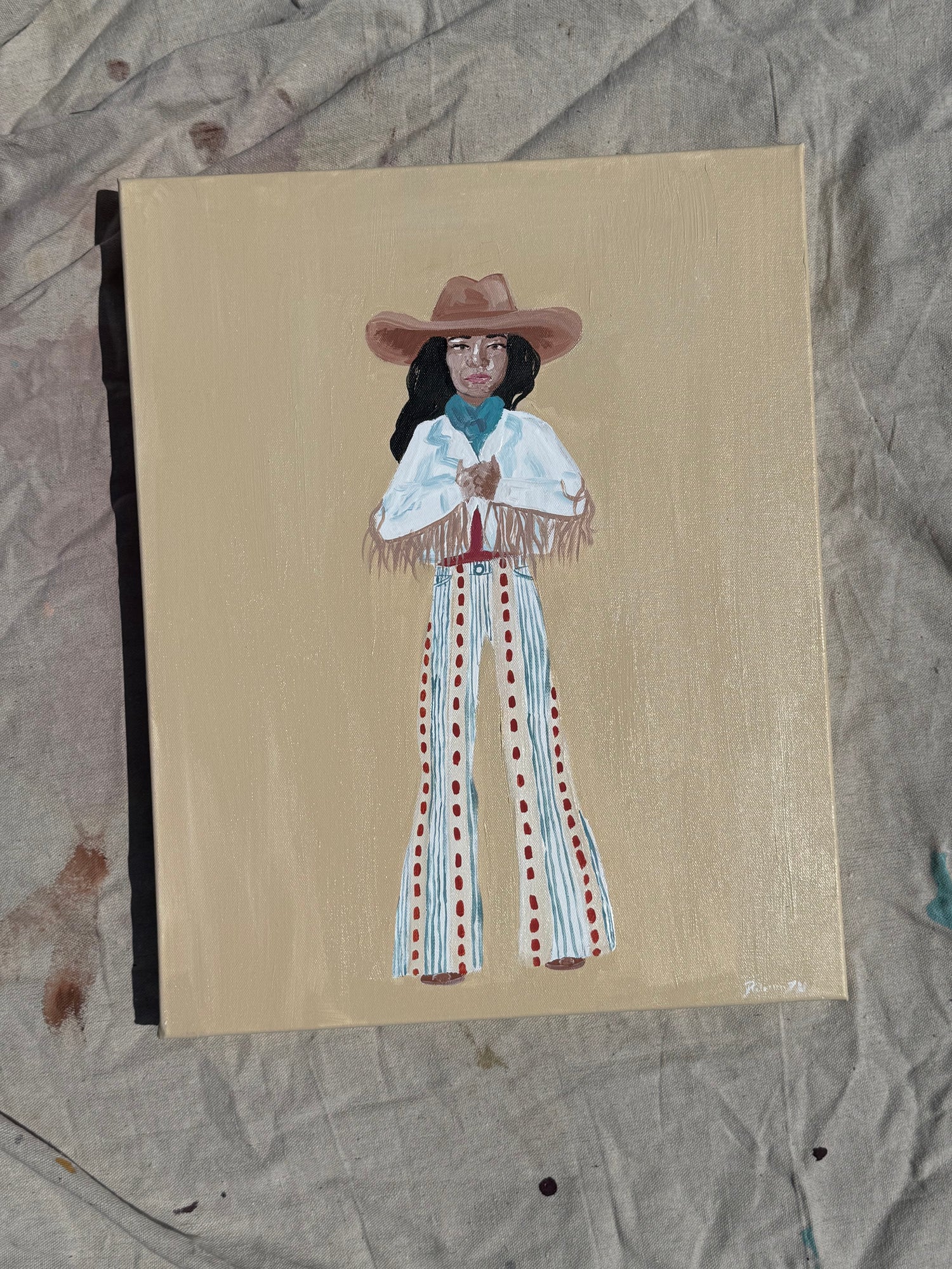 Inspired by the confidence of modern cowgirls, this piece captures bold femininity with a touch of vintage nostalgia