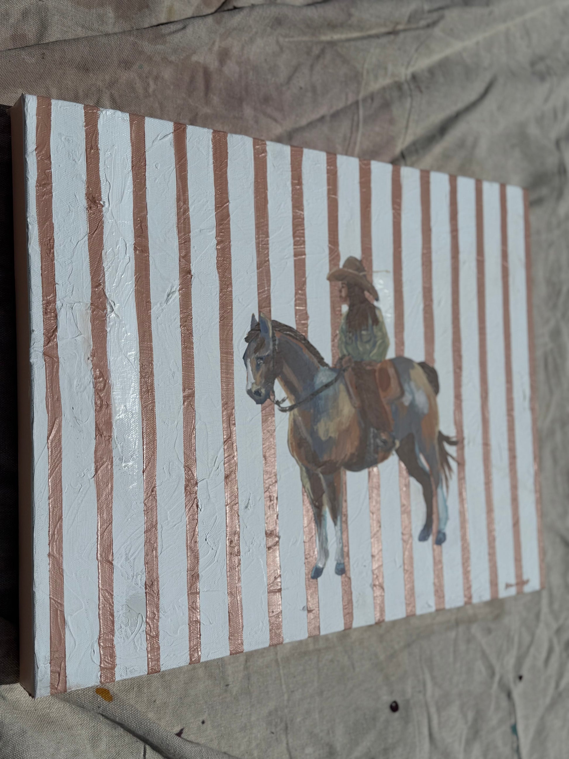 Inspired by the resilience of the Western spirit, this piece highlights the connection between rider and horse.